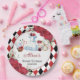 Personnalisez facilement et rapidement ces assiettes en papier fantaisistes pour la fête de thé d'Alice au Pays des Merveilles, il suffit d'appuyer sur le bouton Modifier à l'aide des outils de conception pour réorganiser et formater davantage le style et l'emplacement du texte. (c) The Happy Cat Studio.