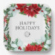 Fête de vacances Moderne Ajouter votre logo Entreprise Fête de Noël Papier Plaques dispose d'un design chic de vacances de l'aquarelle rouge et blanc fleurs poinsettia, saint et mistletoe en rouge, blanc et vert festif sur un arrière - plan blanc. Le texte "Happy Holidays" est écrit en typographie de script de calligraphie et personnalisé avec le logo de votre entreprise ci-dessous. Parfait pour votre fête de Noël d'entreprise. Modifiez simplement le texte dans les zones de texte fournies. Conçu par ©Evco Holidays www.zazzle.com/store/evcoholidays