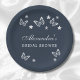 Personnalisez cette plaque en papier de douche à nuptiale, élégante et fantaisiste, conçue pour élever votre fête avec une touche de charme boho chic. Contre un arrière - plan bleu marine sophistiqué, des papillons blancs délicats flottent gracieusement, ajoutant un air de fantaisie et de féminité à vos festivités. Le contraste chic entre bleu marine et blanc immaculé crée un décor frappant, tandis que fleurissent de charmantes fleurs marguerites blanches, donnant une touche bohème à votre table. Ces assiettes en papier marient sans effort l'élégance à une ambiance détendue d'inspiration boho, parfaite pour la future mariée moderne. Que ce soit pour un rendez-vous intimiste ou une affaire somptueuse, ces assiettes enchanteront vos invités avec leur beauté sobre et leur style raffiné.