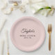 Créez votre propre somptueuse douche nuptiale minimaliste moderne de petites plaques de papier rond. Une calligraphie noire classique et élégante associée à une police serif tout casquette. Customisez les styles de police pour créer votre propre vaisselle pour sa célébration spéciale. Customisez la couleur arrière - plan rose pâle et blush.