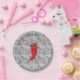 Un personnage de dessin animé rouge et poivre chaud. Design original avec motif en dentelle noir et blanc dans l'arrière - plan. Plaques de papier personnalisées. Une idée déco pour tous les fêtes comme vous pouvez l'imaginer! Idée cadeau pour les amateurs de nourriture épicée.