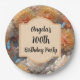 Célébrez n'importe quel âge avec une jolie plaque en papier personnalisable. Magnifique chrysanthèmes rose et orange avec papillons bleus et somptueuse végétation. Un design féminin élégant mais joli.
