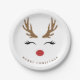 Joyeux Cerf de Noël. Fête jetable de rennes d'anniversaire de Noël fournit une fois utiliser des tasses de papier et des plaques de papier.