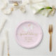 Conçu pour aller avec notre collection de fête prénatale/livraison spéciale bébé. Avec une cigogne mignonne portant une livraison très spéciale, sur un fond rose doux, ces assiettes en papier sont parfaites pour une fête prénatale ou une baby shower spéciale. Personnalisez vos détails d'événement en texte doré chic. Conçu par Thisisnotme©