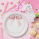 Assiettes En Carton Fête Prénatale Fille Arc-en-Ciel Ruban Rose Toile