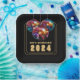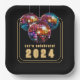 Fêtons ! 2024 plaque papier. Le texte est dans une police dorée. Si vous voulez un autre texte, il est personnalisable et facile à modifier. Cette plaque en papier convient à la plupart des événements, fêtes et célébrations. Décorez et créez un cadre de table cohésif pour une fête à retenir.
