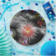 Feu d'artifice dans le ciel noir avec nuages et étoiles pour la fête d'anniversaire.