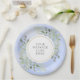 Avec des feuilles de verdure à l'aquarelle botanique sur un fond à l'aquarelle bleu marbré. Cette assiette en papier élégante peut être personnalisée avec votre propre message. Parfait pour les mariages, les fêtes de fiançailles, les célébrations d'anniversaire, les douches de mariée, les douches de bébé, les baptêmes et les réunions d'anniversaire. Conçu par Thisisnotme©
