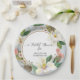 Assiettes En Carton Feuille de magnolia blanche aquarelle florale bleu