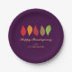 Cette plaque en papier présente un graphique de feuilles d'automne aux couleurs vives. Les couleurs utilisées dans ce design simple mais audacieux sont le rouge, l'orange, le marron et le vert citron sur arrière - plan violet foncé. Le texte personnalisable, en orange clair, dit : Bon thanksgiving. Personnalisez cette plaque en papier avec votre nom et l'année.