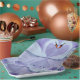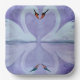 Une belle paire de cygnes nage sur le lac dans les tons violets. La paire de cygnes symbolise une relation à vie. Le graphisme est agréable sur des plaques en papier et divers accessoires mariages.