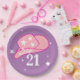 Fille cowgirl casquette avec étoiles et illustration cardiaque pour la fête de campagne tendance, moderne. Casquettes Cowboy pour filles, cadeaux d'anniversaire de ferme de cowgirl roses, papeterie dans des couleurs pastel esthétique.