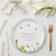 Customisez cette plaque papier Fleur sauvage 1er anniversaire avec le nom de votre petite fille et ajoutez une touche élégante à sa fête d'anniversaire ou à son pique-nique. Les Jolies Fleurs de prairie aquarellisées et papillons Whimsical contre un arrière - plan blanc crêpe, donneront un regard doux et boho à sa journée spéciale.