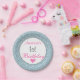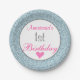 La parties scintillant bleu clair et fillette scintille une plaque de papier de 1er anniversaire avec une écriture rose et gris chaud. Vous pouvez facilement ajouter le nom de votre choix et modifier la couleur et la police en utilisant l'option personnaliser !