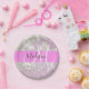 La parties scintillant de bokeh pastel lilas chimmer de fille scintille le nom monogramme et la plaque papier initiale. Votre nom personnalisé et votre monogramme sont écrits dans un élégant script écrit à la main avec un arrière - plan rose.
