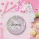 La parties scintillant de bokeh pastel lilas chimmer de fille scintille le nom monogramme et la plaque papier initiale. Personnalisez avec votre nom personnalisé en noir et votre monogramme initial en blanc. Vous pouvez modifier la couleur du texte, le style et la taille de police à l'aide de l'option personnaliser.