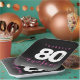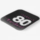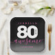 Célébrez le grand huit oh avec ce design moderne élégant, qui comprend un bloc noir, blanc et rose frappant et des lettres écrites à la main sur un riche arrière - plan noir à gris fumé. Design © W.H. Sim. Voir plus sur zazzle.com/expressionsoccasions