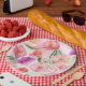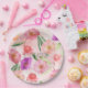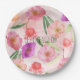 Assiettes En Carton Fille Peach rose violet aquarelle Florale