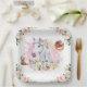 Plaques en papier de fête d'anniversaire de Cheval rose rose rose floral.