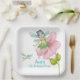 Cute et girly 4th Anniversaire assiettes de papier fête. Le design présente une adorable libellule verte turquoise de fille assise sur une fleur rose magnifique et une petite libellule verte complète la scène. Personnalisez cette belle plaque de papier de fête d'anniversaire avec le nom de la fille et les détails de la fête.