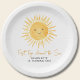 These cute paper plates are decorated with a yellow watercolor smiling sun and say "First Trip Around the Sun" in stylish script typography.