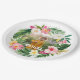 Assiettes En Carton flamant jaune rose fleuri tropical élégant