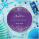 Un élégant arrière - plan violet avec une élégante parties scintillant faux argent, brille. Le texte : Le nom est écrit en blanc avec un script de style à la main moderne. Personnalisez et ajoutez un nom, un âge et une date.