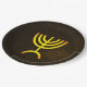 Un rendu numérique brun et or de la menorah juive à sept branches (hébreu : מְ נ וֹ רָ ). La menorah à sept branches, utilisée dans le sanctuaire portatif mis en place par Moïse dans le désert et plus tard dans le Temple de Jérusalem, est un symbole du judaïsme depuis des temps anciens et est l'emblème sur les armoiries de l'État moderne d'Israël. Le kohanim a allumé la menorah dans le Sanctuaire tous les soirs et l'a nettoyée tous les matins, en remplaçant les mèches et en mettant de l'huile d'olive fraîche dans les tasses. On a dit que la menorah est un symbole de la nation d'Israël et de notre mission d'être "une lumière pour les nations" (Ésaïe 42:6). Nos sages insistent sur le fait que la lumière n'est pas une force violente ; Israël doit accomplir sa mission en donnant l'exemple, et non en utilisant la force. Cette idée est mise en évidence dans la vision de Zacharie 4:1-6. Zacharie voit une menorah, et G-d explique : "Pas par la puissance, ni par la puissance, mais par Mon esprit." G-d a révélé la conception de la menorah à Moïse comme suit (Exode 25:31-40) : 31 Et vous devez faire un abat d'or pur. De travail martelé, l'abat-jour doit être fabriqué. Sa base, ses branches, ses gobelets, ses boutons et ses fleurs sont à sortir de lui. 32 Et six branches sortent de ses côtés, trois branches de l'abat-jour de son côté, et trois branches de l'abat-jour de son côté. 33 Trois tasses en forme de fleurs d'amande sont sur l'un ensemble de branches, avec des boutons et des fleurs alternant, et trois tasses en forme de fleurs d'amande sur l'autre ensemble de branches, avec des boutons et des fleurs alternant. C'est comme ça avec les six branches qui sortent du kiosque. 34 Et sur l'agneau, il y a quatre tasses en forme de fleurs d'amande, avec ses boutons et ses fleurs alternant. 35 Et le bouton sous deux branches en est sorti, et le bouton sous les deux autres branches en est sorti, et le bouton sous deux autres branches en est sorti, car les six branches qui sortent du kiosque à lampadaire. 36 Leurs boutons et leurs branches doivent en sortir. Tout cela est un morceau de travail martelé, d'or pur. 37 Et vous devez en faire sept lampes; et les lampes doivent être allumées, et elles doivent briller sur la zone devant. 38 Ses douilles et ses porte-feux sont d'or pur. 39 De l'or pur, il le ferait avec tous ces ustensiles. 40 Et voyez que vous les faites après leur pern qui vous a été montré dans la montagne. Jusqu'en 2009, la représentation conservée la plus ancienne de la menorah du Temple était dépeinte dans une frise sur l'Arc de Titus, commémorant sa parade triomphale à Rome après la destruction de Jérusalem en l'an 70. En 2009, cependant, les ruines d'une synagogue avec des poteries datant d'avant la destruction du Second Temple ont été détruites sous terre à Magdala appartenant aux Légionnaires du Christ, qui avaient l'intention de construire un centre d'études pour les femmes. À l'intérieur des ruines de la synagogue a été découvert une pierre rectangulaire, qui avait à sa surface, entre autres sculptures ornées, une représentation de la menorah à sept branches qui différait nettement de la représentation sur l'Arc de Titus, probablement sculpté par un témoin oculaire de la menorah réelle présente à l'époque dans le Temple à Jérusalem. Cette menorah a des bras qui sont polygonaux, non arrondis, et la base n'est pas graduée mais triangulaire. Des représentations des sept artefacts ramifiés ont été trouvées sur des tombes et des monuments datant du 1er siècle comme un symbole fréquemment utilisé du judaïsme et du peuple juif. Contrairement à certains modèles modernes, la menorah antique ne contenait rien qui ressemblait à sept bougies car elles n'existaient pas à l'époque.