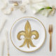 Cette assiette de fête présente une fleur de lis dorée au centre sur un arrière - plan blanc éclatant avec une jante dorée autour du bord. Coordonne avec les autres produits de ma collection Beaucoup d'Ado à propos de rien.
