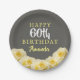 Fleur de rose jaune 60e Plaques d'anniversaire. De belles roses jaunes. L'arrière - plan est gris tableau noir. Le texte est en blanc et jaune et est facilement personnalisable - personnalisez-le avec votre nom et votre âge. Parfait pour une fête du soixantième anniversaire de femme.