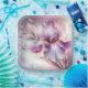 Fleur d'iris rose et violet aux détails complexes, en or et ornée de gouttes de rosée