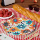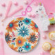 Une fabuleuse assiette de fleur de boho. Ce design floral coloré des années 70 présente des fleurs aux couleurs vives en orange et bleu. Un superbe design rétro de vaisselle qui se démarquera de la foule.