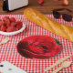 Assiettes En Carton Fleur rose rouge vif Belle florale