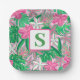 Assiettes En Carton Fleur tropicale Monogramme rose blanc vert Preppy
