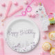 Jolies plaques de papier floral "Joyeux Anniversaire". Accessoires de fête correspondant pour coordonner cette conception d'anniversaire.