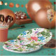 Assiettes En Carton Fleurs blanches, oiseaux, flamants, abeilles,