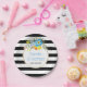 Assiettes En Carton Fleurs bleues modernes et rayures mariage florales