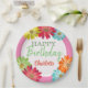Assiettes En Carton Fleurs colorées Nom personnalisé Joyeux anniversai