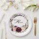 Un bouquet de fleurs d'aquarelle bordeaux avec une lettre monogrammée au centre de l'assiette Choisissez l'occasion pour ces plaques en papier, elles conviennent à tout. Des serviettes en papier sont disponibles dans mon magasin.