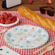 Assiettes En Carton Fleurs d'aquarelle rose et bleu.