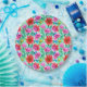 Plaques de papier fête d'anniversaire rose, vert, rouge et violet motif floral.