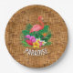 Assiettes En Carton Fleurs de Flamant rose sur Motif en osier