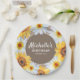 Des tournesols rustiques jaunes et bruns et des marguerites blanches sur des plaques de papier d'anniversaire personnalisées en forme de burlap pour filles ou femmes. Parfait pour les fêtes d'été ou d'automne. Customisée du nom de l'invitée d'honneur et de sa date de fête. Le texte est personnalisable, de sorte que cette assiette peut être conçue pour les anniversaires ou toute autre occasion spéciale que vous pouvez fêter. C'est vrai pour la plupart des produits de ma boutique. Contactez-moi pour obtenir de l'aide sur vos personnalisations ou pour demander des produits Zazzle correspondants ou coordonnés supplémentaires pour votre événement.
