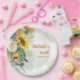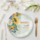 Fleurs de soleil jaunes et feuilles verts élégants, à la campagne, plaques de papier rond pour fêtes d'anniversaire personnalisées pour femmes. Personnalisez avec son nom et son âge. Contactez-moi pour obtenir de l'aide sur vos personnalisations ou pour demander des produits Zazzle correspondants ou coordonnés supplémentaires pour votre groupe.