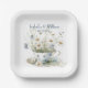 Assiettes En Carton Fleurs denim bleu défraîchi et marron personnalisé