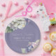 Ces assiettes romantiques à fleurs mariage disposent d'hydrangées violettes et blanches aquarelles sur un arrière - plan poussiéreux de couleur lavande violette. Un délicat bouquet de fleurs d'hydrangée est représenté sur le dessus, et un autre sur le fond.