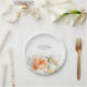 Assiettes en papier élégantes avec fleurs de terracotta blanche et pêche et lumière douce botanique