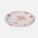 Les Assiettes en Papier Fleurs et Prosecco Fête de Fiançailles Florale présentent un verre à prosecco doré et rose orné de délicates fleurs roses et de pétales. Le design est parfait pour un brunch chic sur le thème Fleurs et Prosecco et une célébration pétillante. Avec une calligraphie élégante et des détails floraux roses élégants.