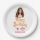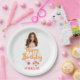 Floral Flowers Joyeux Anniversaire Manufacture Plaques de papier photo. Fêtez l'anniversaire d'une fille spéciale avec ces charmantes assiettes personnalisées ! Doté d'un design floral dessiné à la main, joyeux texte "Joyeux Anniversaire" en écriture orangée, et d'une photo et d'un nom personnalisés. Idéal pour les filles, nièces, petites-filles ou amis.