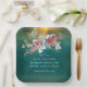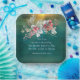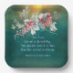 Les assiettes en papier personnalisées pour mariage chrétien dépeignent une élégante nature hivernale de Noël avec la beauté de baies rouges gelées aquarelles et de feuilles de sauge vert tendre délicates et de conifères sur un fond abstrait or et vert foncé. Elles présentent une citation inspirante, "Deux vies unies dans l'amitié, Deux amis unis dans l'amour, Un amour uni dans le Christ". Personnalisez avec les noms ou les détails de votre choix.